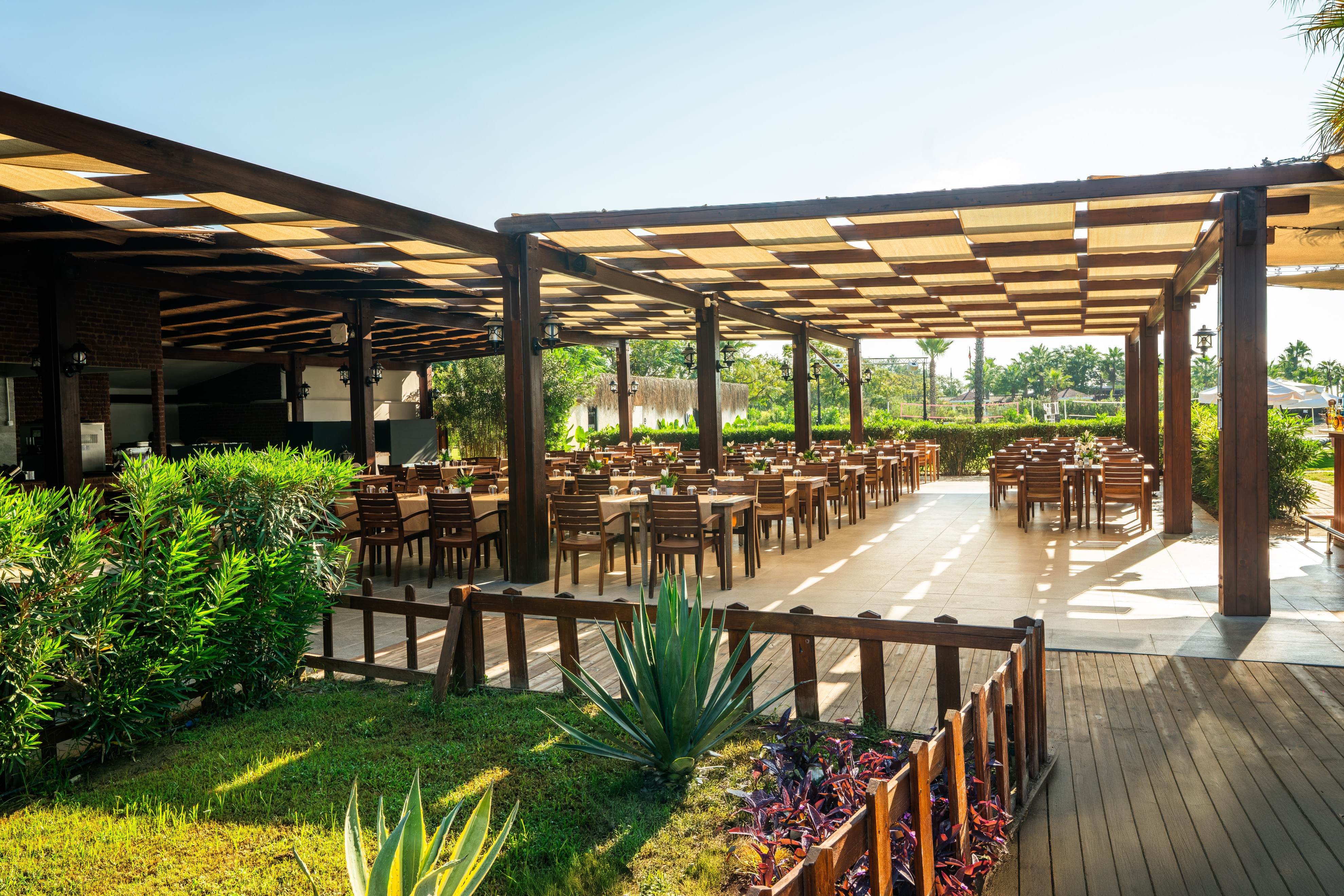 В начале/конце летнего сезона (апрель, май, октябрь) работа заведений на открытом воздухе (водные горки, пирсы на пляжах, спортивные и игровые площадки, рестораны, бары, мероприятия на открытом воздухе и т.д.) зависит от погодных условий. Концепция отеля работает в полном режиме только в летний период времени.